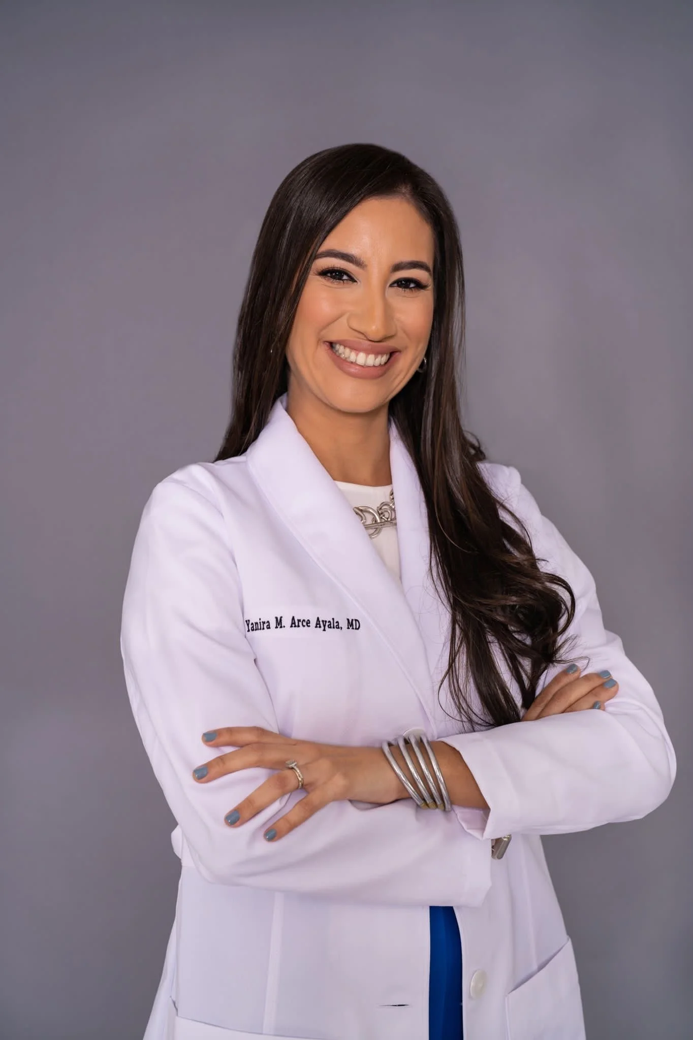 La Dra. Yanira M. Arce Ayala, obtuvo su doctorado en medicina en la Escuela de Medicina de la Universidad Central del Caribe, de donde se graduó con altos honores. Completó una especialidad en Medicina Interna en el Hospital de Veteranos de San Juan, donde fungió como Jefa de Residentes y culminó su subespecialidad en Alergia e Inmunología para niños y adultos en la Universidad de Puerto Rico, Recinto de Ciencias Médicas.